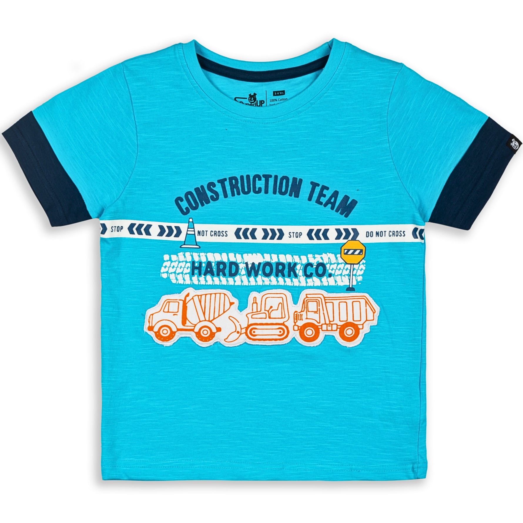 Construction Team Curious Blue Printed Boys T-Shirt 2-8 Yrs