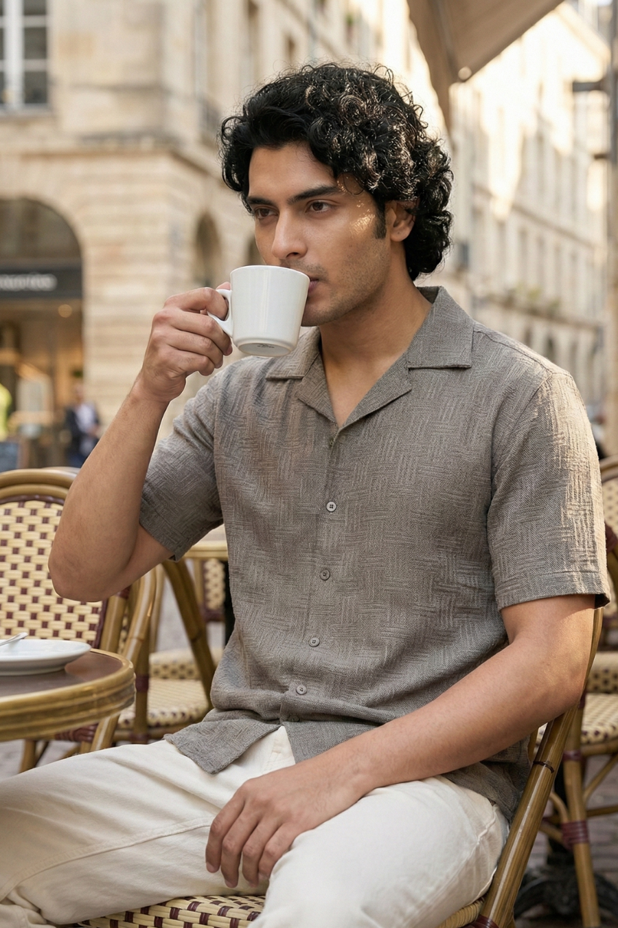 Step into effortless style with this Grey Textured Cuban Collar Shirt. Crafted from a lightweight, breathable fabric with a subtle textured weave, it brings comfort and class together. The sleek cuban collar adds a modern twist, making it perfect for both casual evenings and elevated day looks. A versatile staple in a refined grey shade, this shirt is your go-to for understated sophistication.