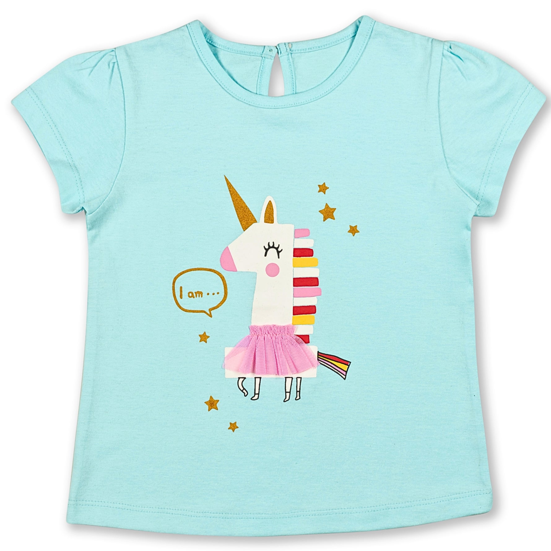 I Am Unicorn Aqua Printed Girls Top 2-8 Yrs