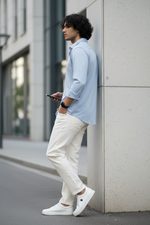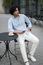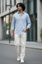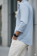Cool, calm, and effortlessly stylish. The Sky Blue Mercerised Piqué Shirt offers a smooth, lustrous finish that feels light and refreshing — ideal for daytime meetings, brunches, or weekend getaways. Soft to the touch and designed for breathability, it’s a shade that works in every season.