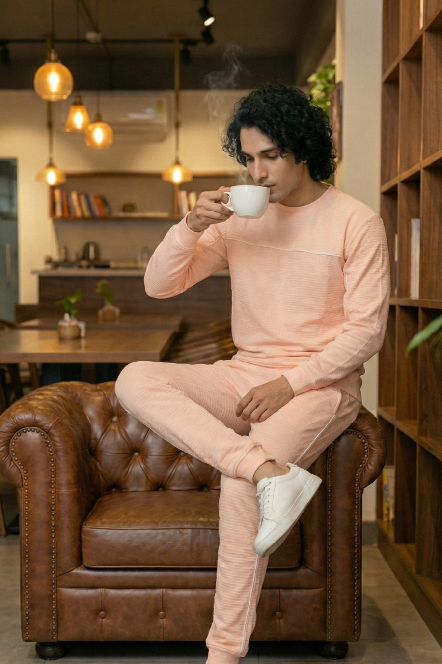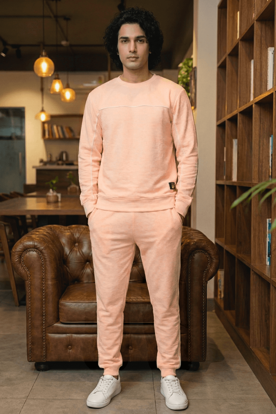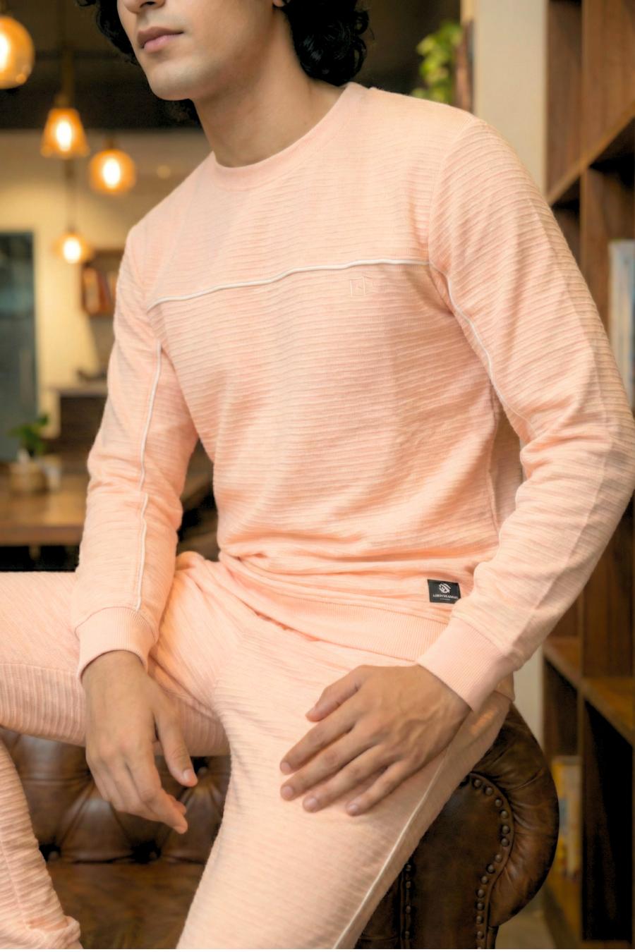 Dapper Tranquil Peach Cotton Sweatshirt & Joggers Co-Ord Set