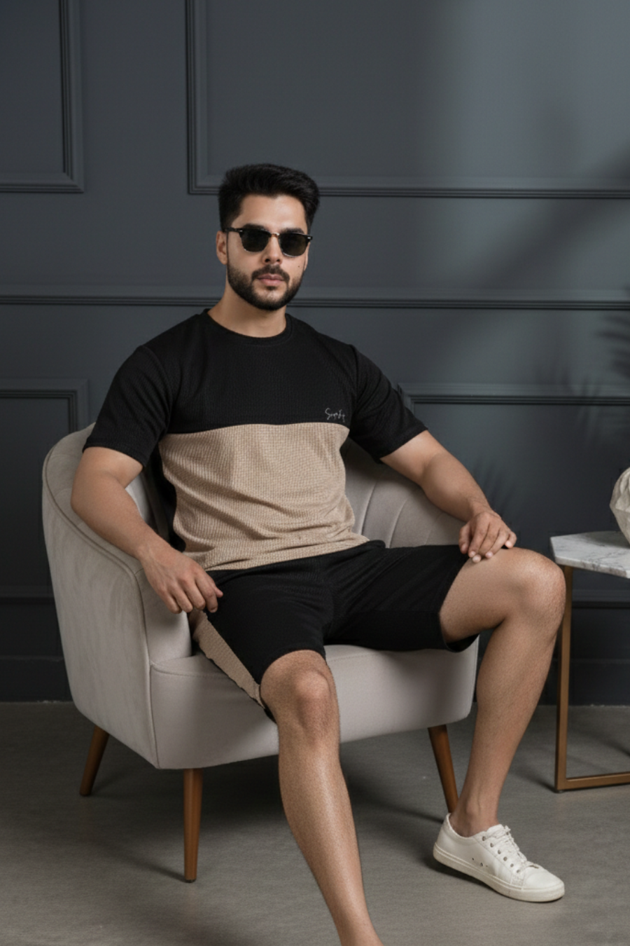 Available in two trendy dual-tone combinations—classic Black & Beige and refreshing White & Mint Blue—this co-ord set ensures you stay sharp and stylish no matter where your day takes you. Because why settle for boring when you can lounge like a pro?