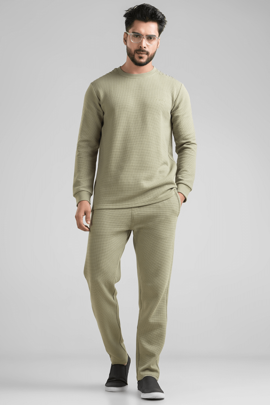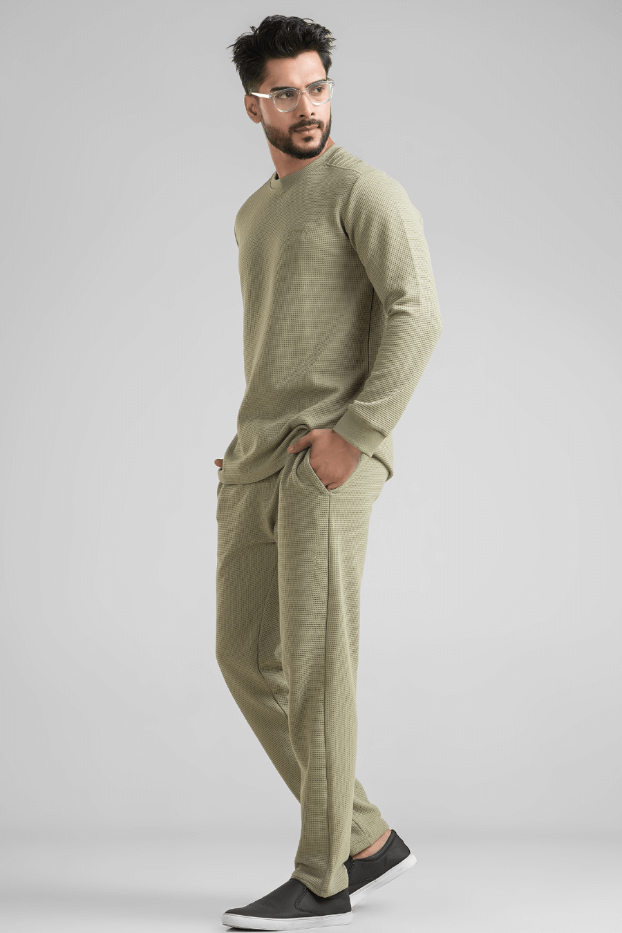 Meet your new go-to co-ord set that balances comfort, structure, and effortless style. Crafted in a premium waffle knitted fabric, this T-shirt & pant co-ord is designed for men who like their casual wear to look as sharp as it feels.