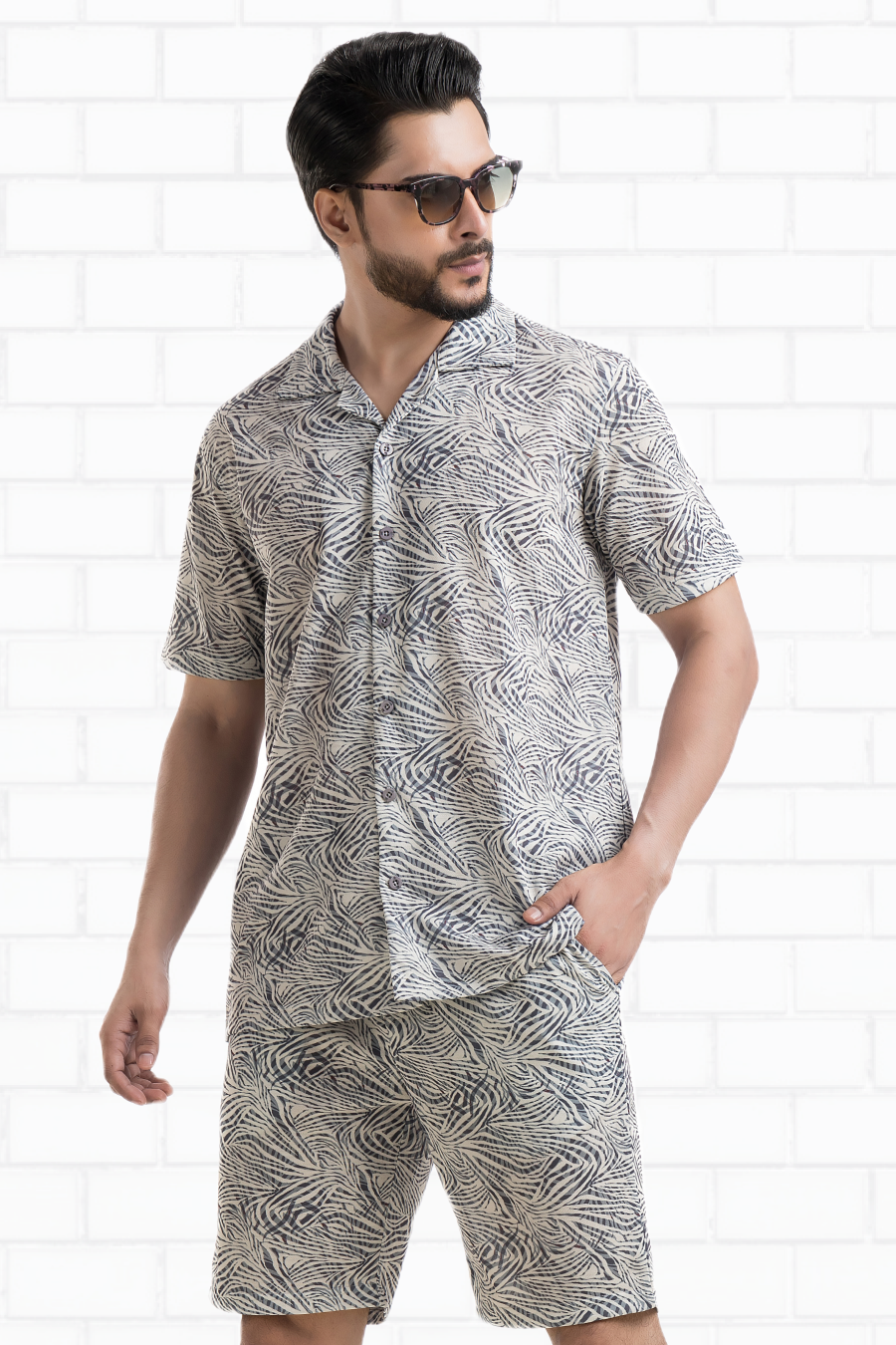 Tropic Vibes Grey Co-Ord Set – All Over Printed Half Shirt & Shorts