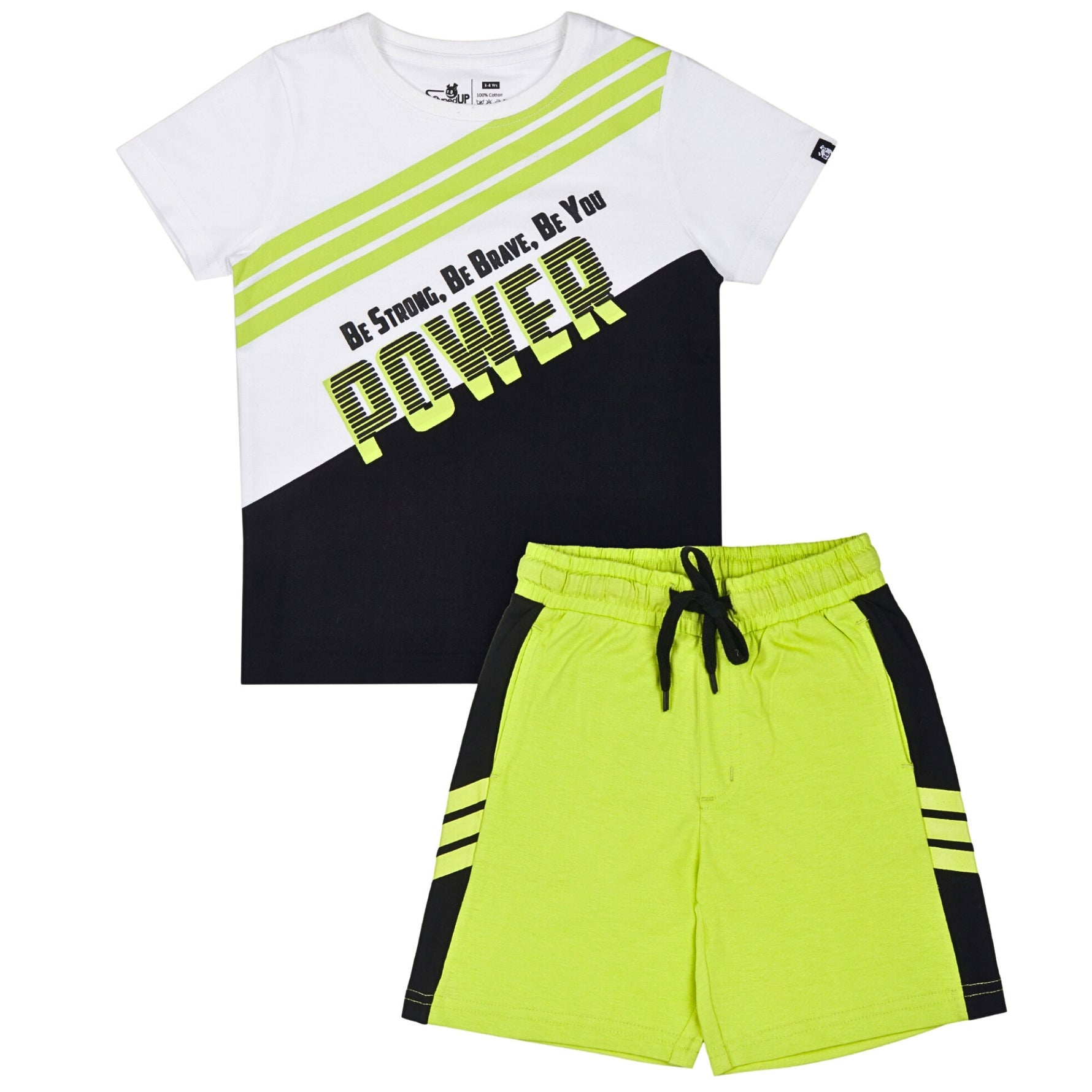 Power White & Black HD Printed Boys T-Shirt with Neon Shorts 2-8 Yrs
