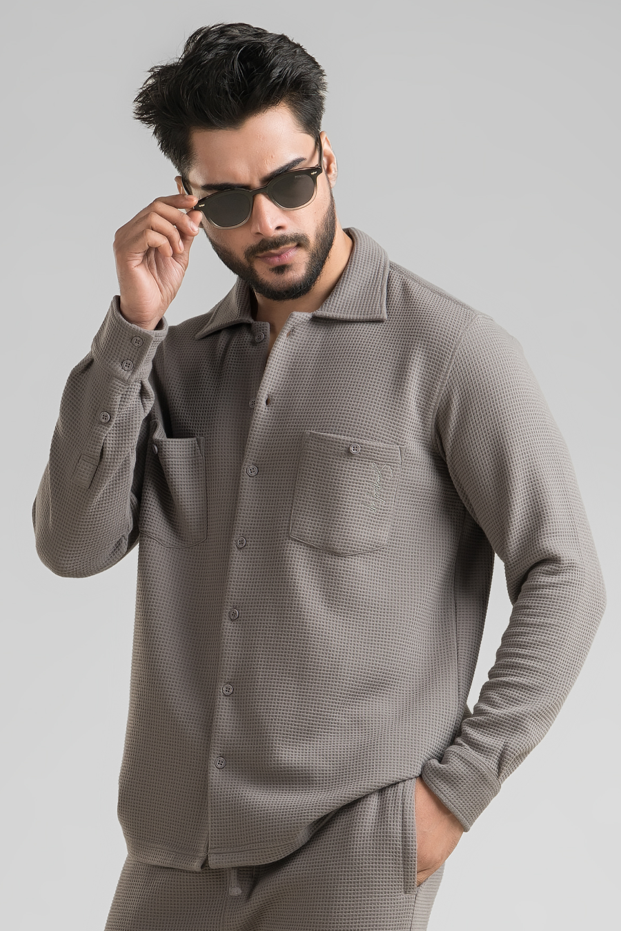 Haven Grey Full Sleeves Waffle Knit Shacket