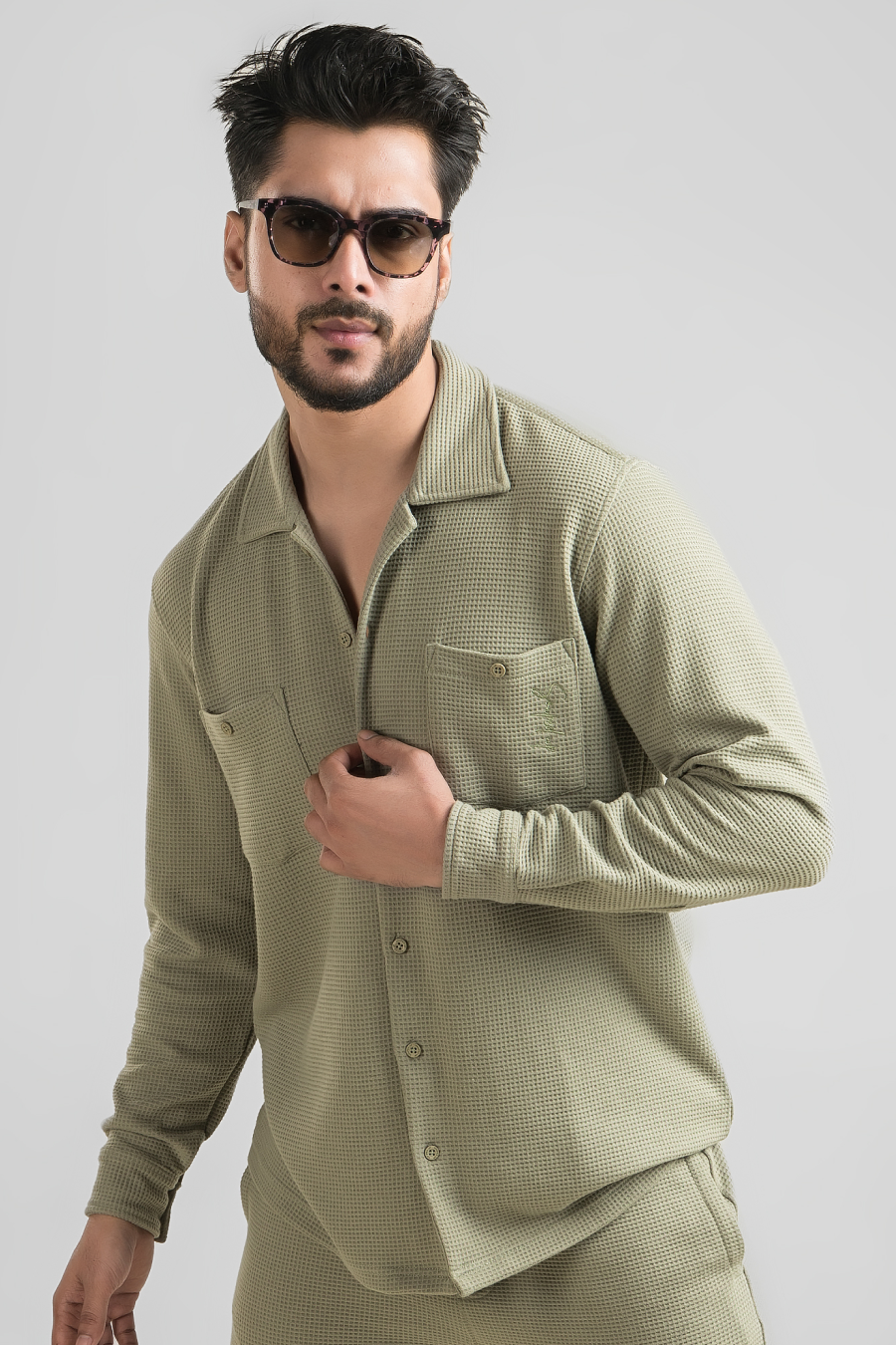 Haven Sage Green Full Sleeves Waffle Knit Shacket