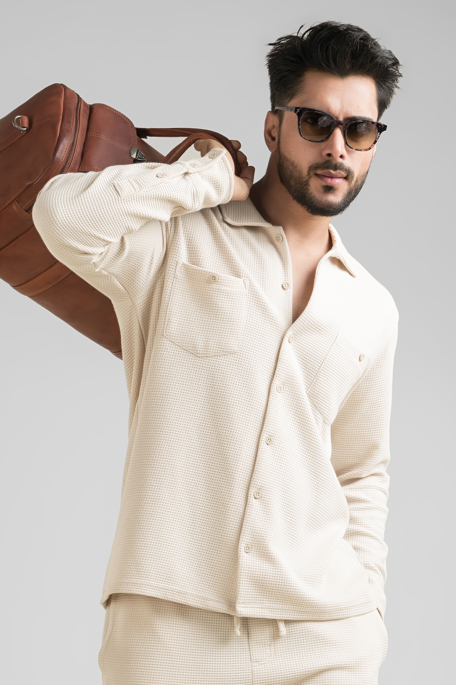Haven Light Beige Full Sleeves Waffle Knit Shacket