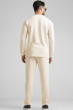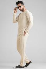 Light Beige Waffle Knit Structured Co-Ord Set | Full T-Shirt & Pant