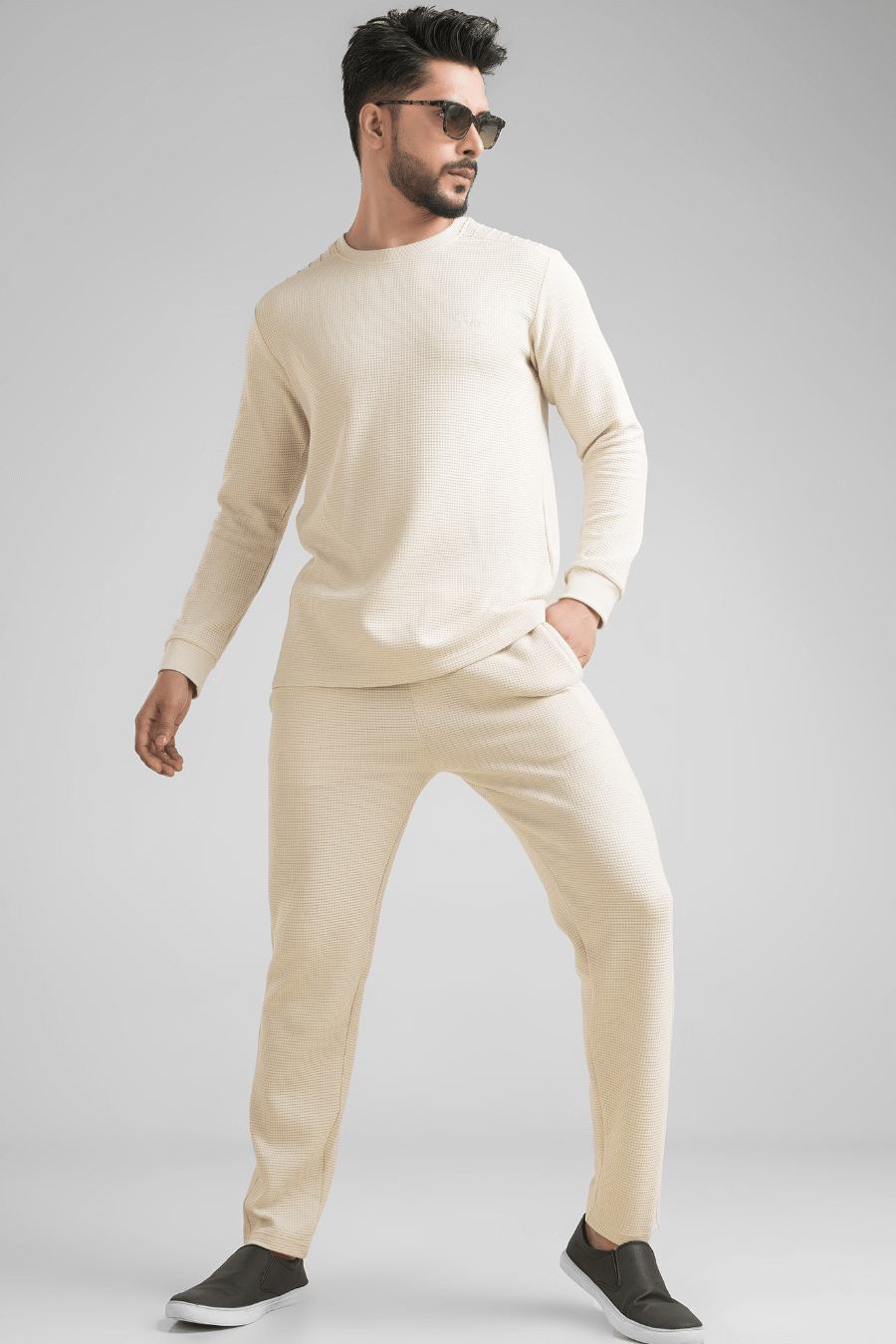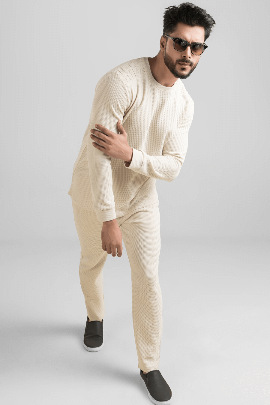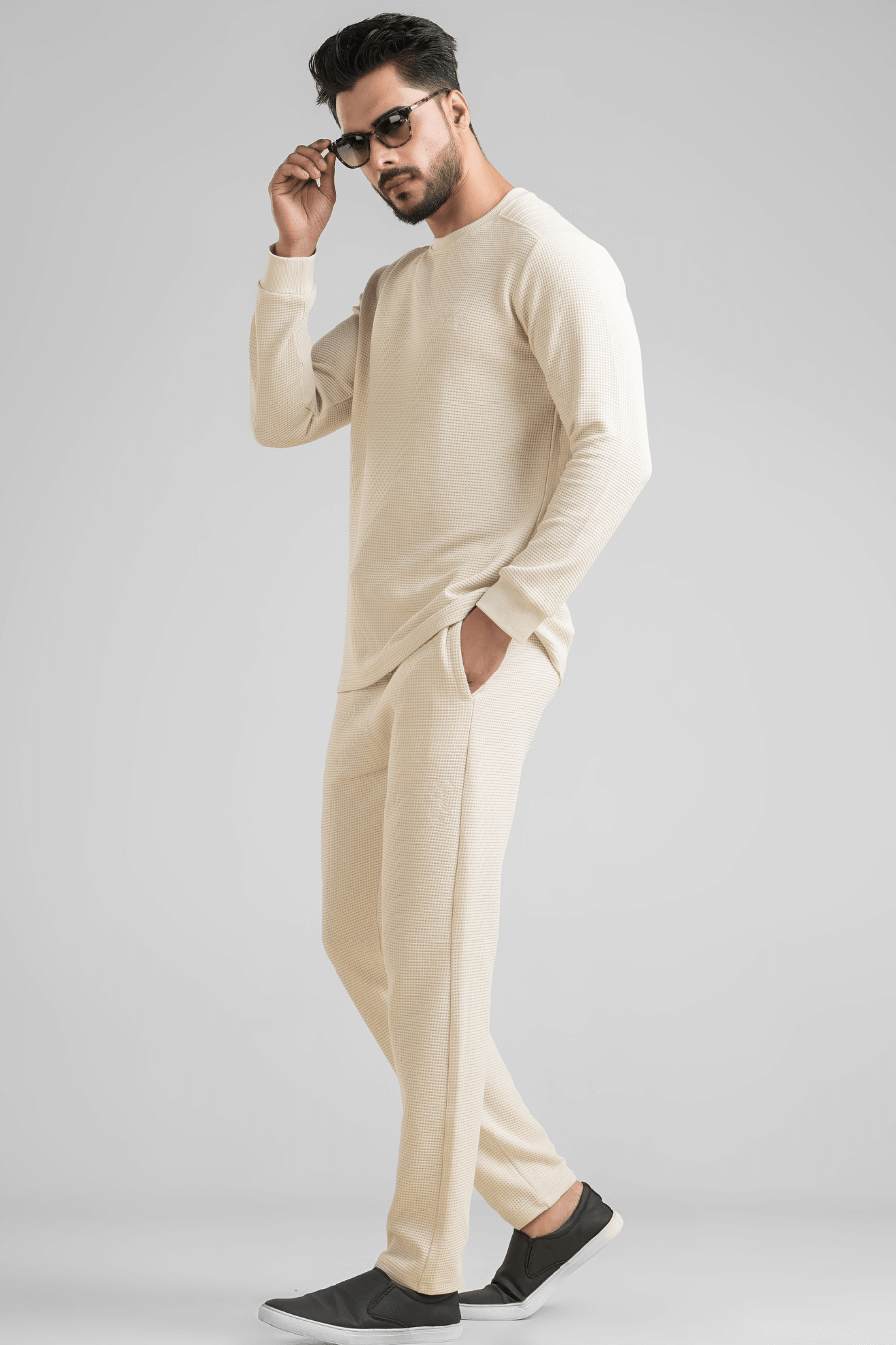 Meet your new go-to co-ord set that balances comfort, structure, and effortless style. Crafted in a premium waffle knitted fabric, this T-shirt & pant co-ord is designed for men who like their casual wear to look as sharp as it feels.