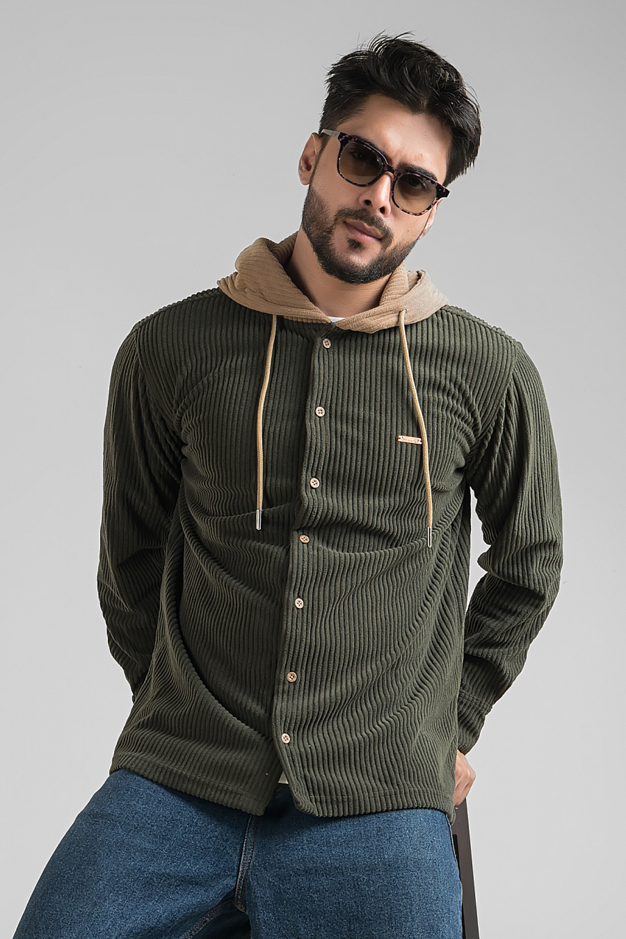Urbanist Bottlegreen Corduroy Hooded Shacket