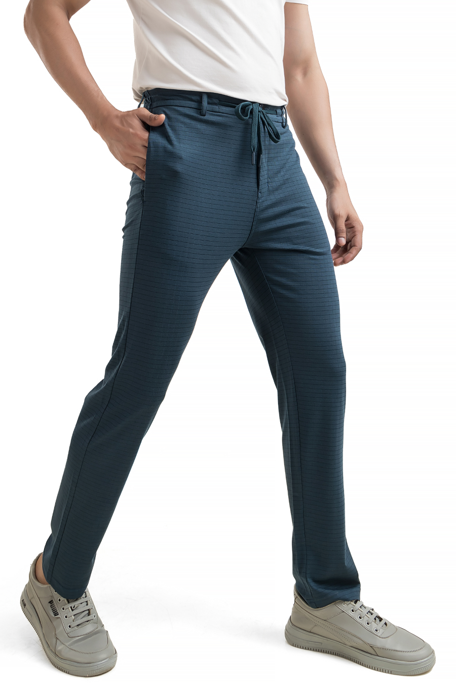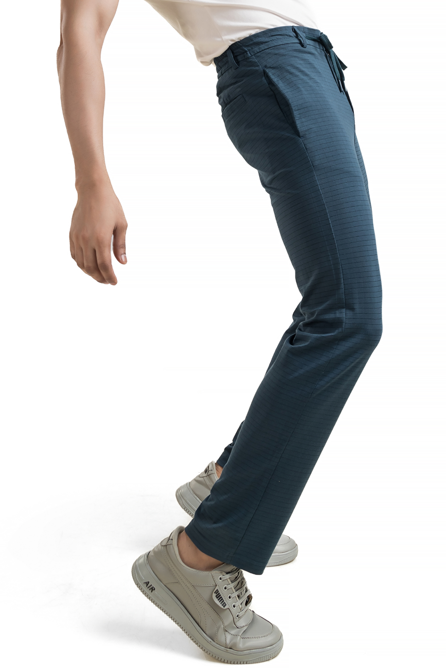 FlexiFit Teal Blue Casual Trouser Pants - Stretchable Comfort with Pockets