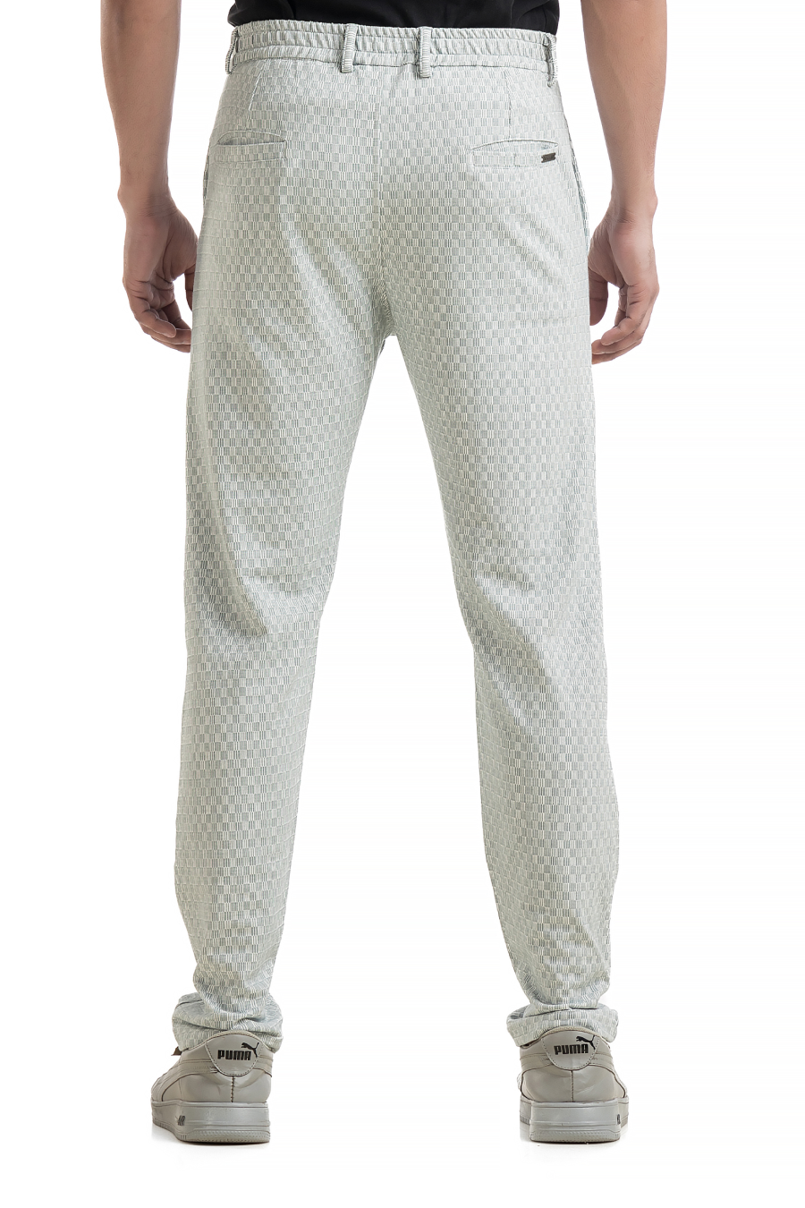 The elasticated waistband with drawcord and button closure ensures a snug, adjustable fit, while the side pockets and back pocket make carrying your essentials a breeze. With an all-over printed design, these pants are available in four chic shades—Light Pista, Light Peach, Grey, and Blue—giving you options for every vibe.