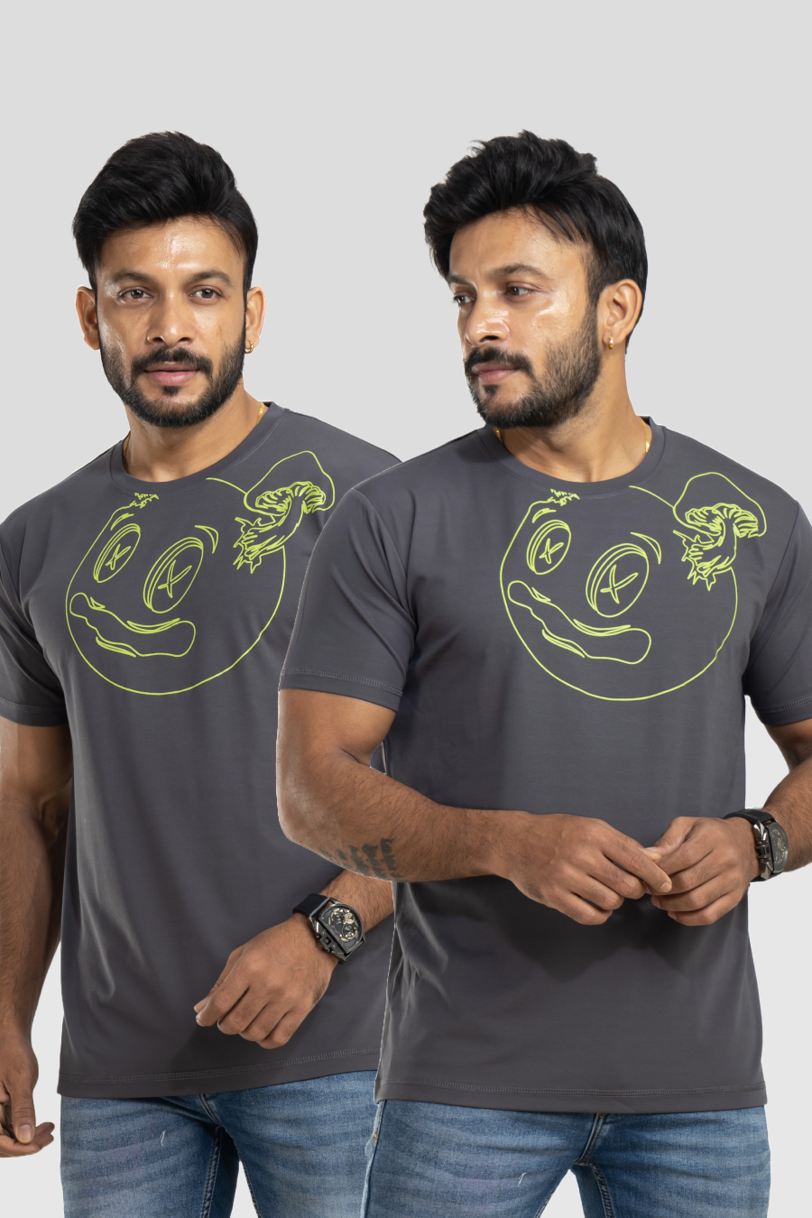 Souped Up Mania Dark Gray 4 Way Stretch Printed T-Shirt