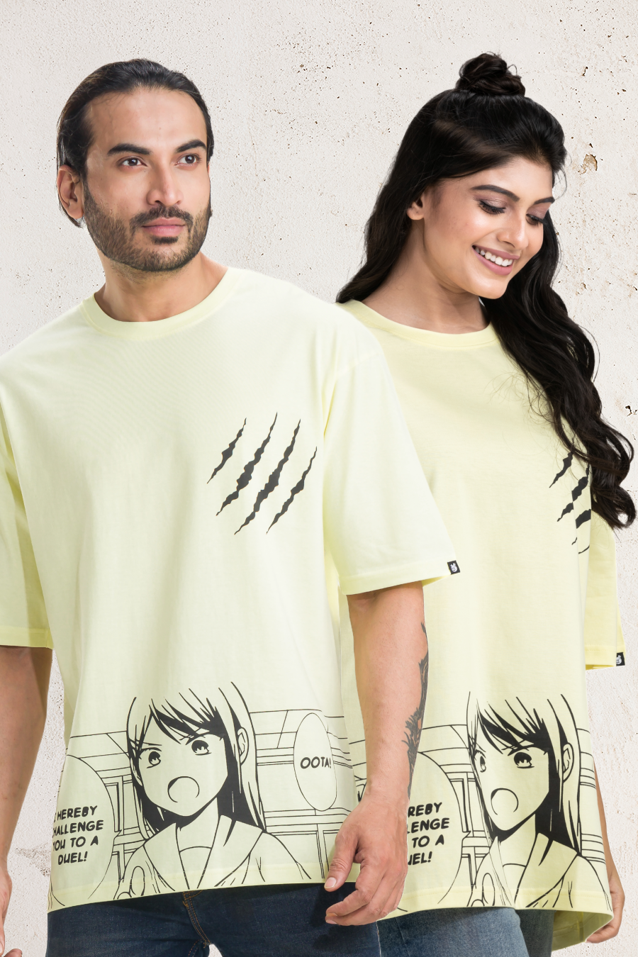 Comic Strip Pale Yellow Unisex Oversized Printed T-Shirt