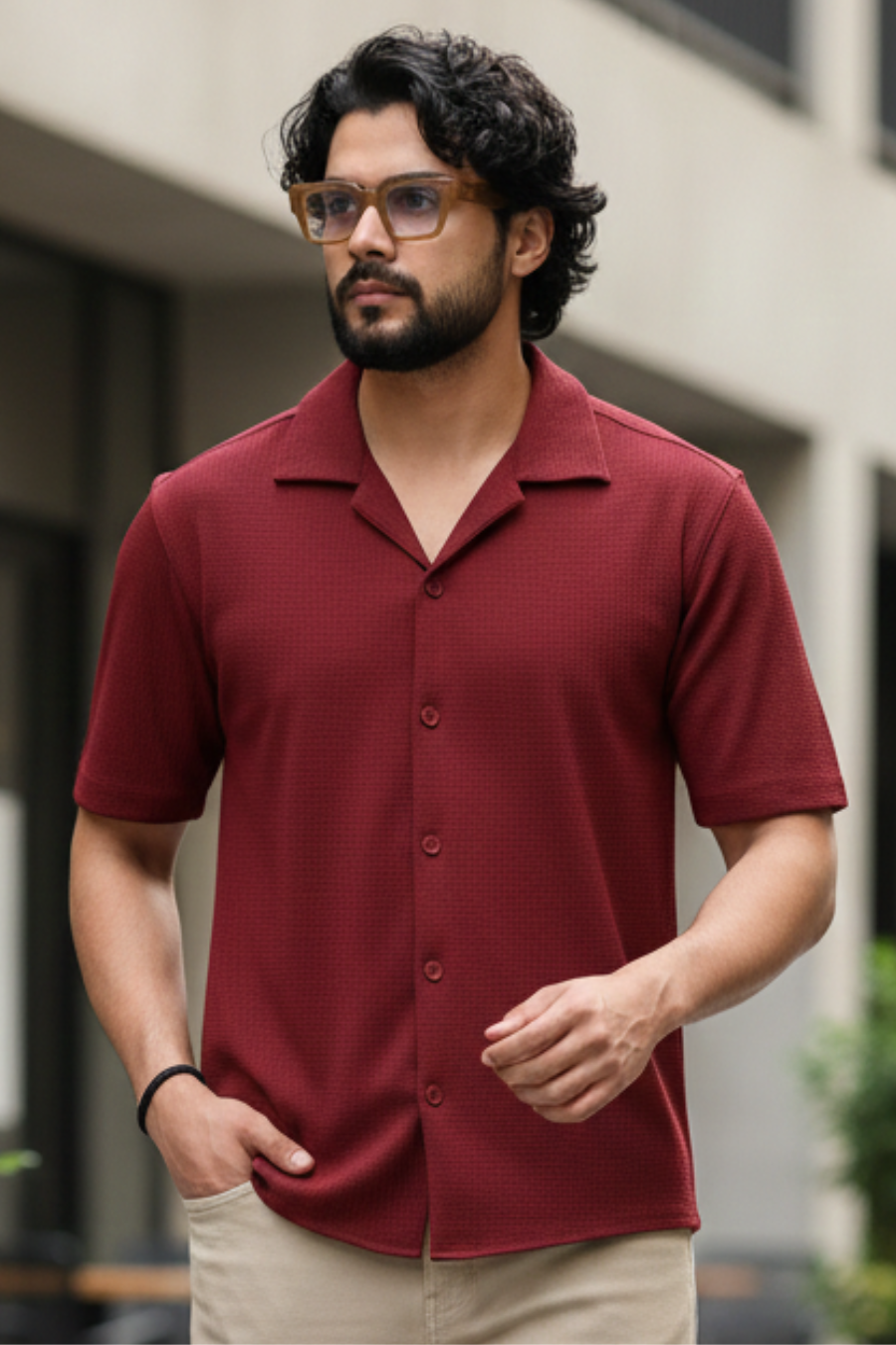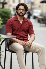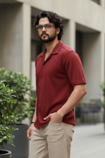 Radiant Revelry Solid Maroon Cuban Collared Half Shirt