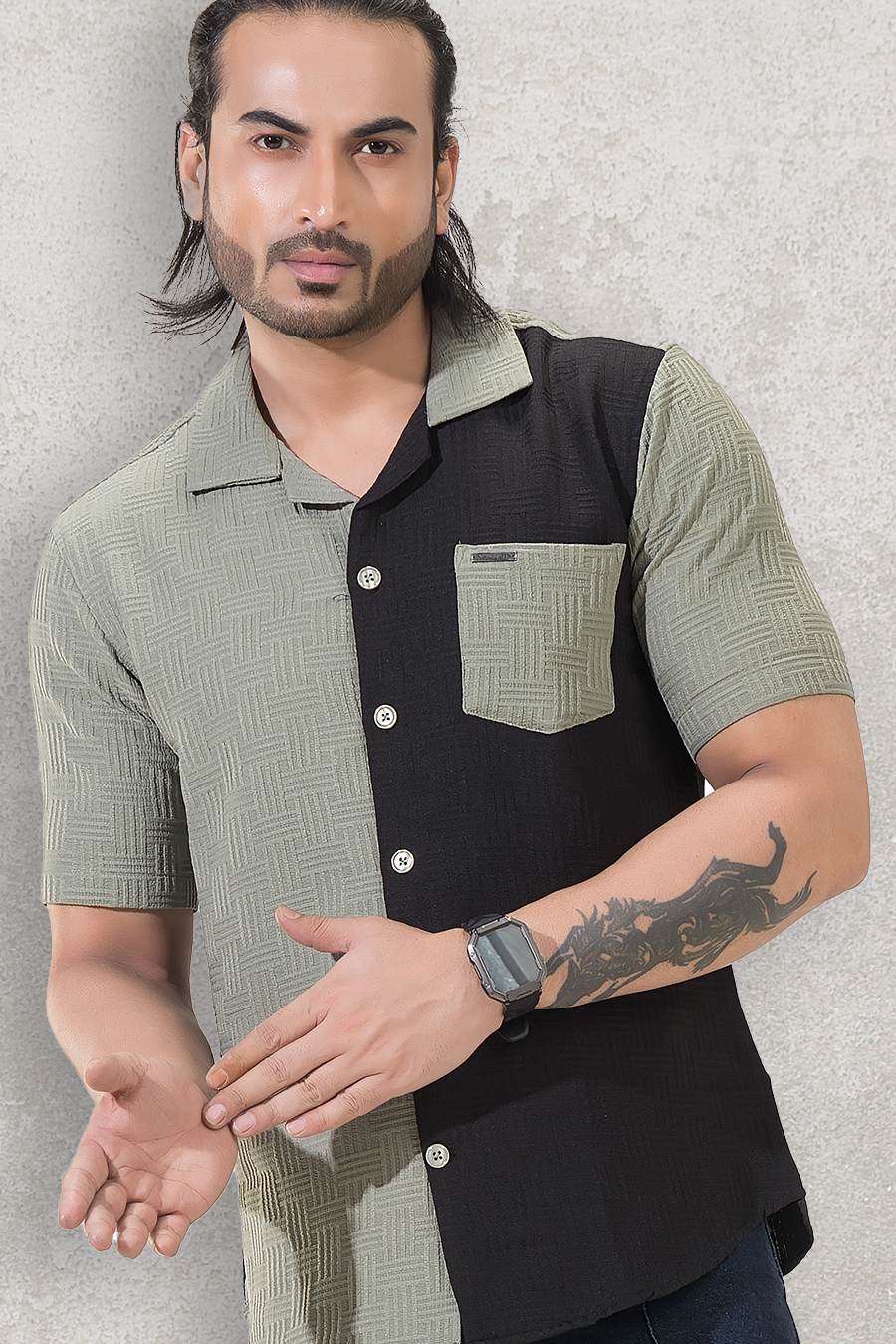 Fusion Flare Black & Olive Dual Color Half Sleeves Shirt