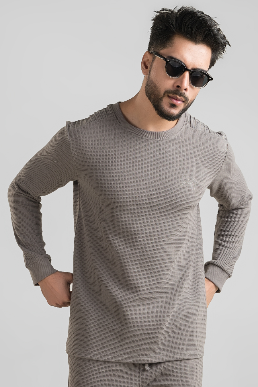 Haven Grey Full Sleeves Waffle Knit T-Shirts