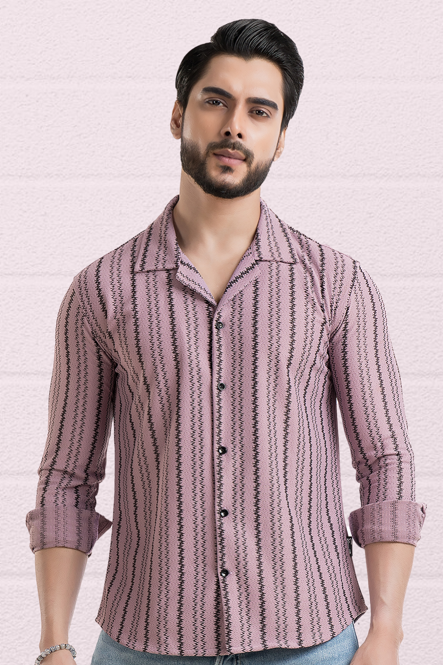 Impulse Lavender Full-Sleeve Printed Zigzag Cuban Collar Shirt