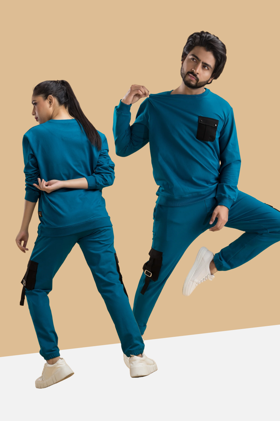 Elite Urbane Teal Unisex Sweatshirt & Joggers Co-Ord Set