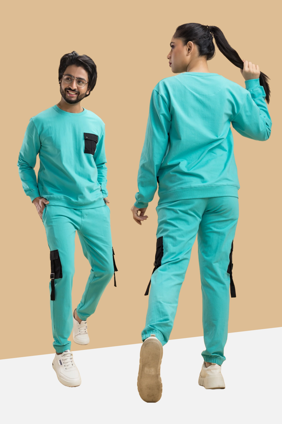 Elite Urbane Blue Turquoise Unisex Sweatshirt & Joggers Co-Ord Set