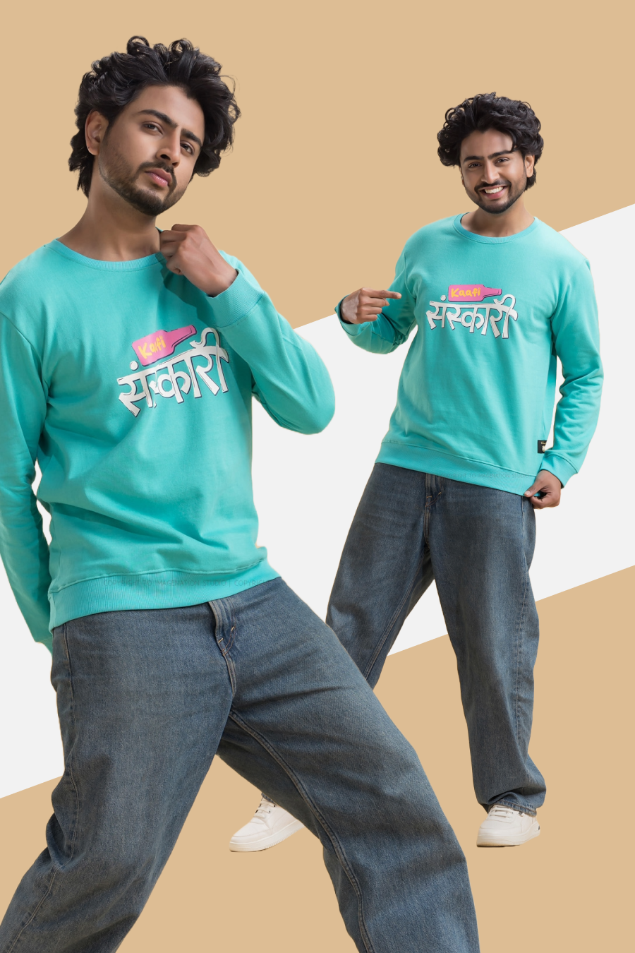 Kaafi Sanskari Turquoise Printed Full Sleeves Unisex Sweatshirt